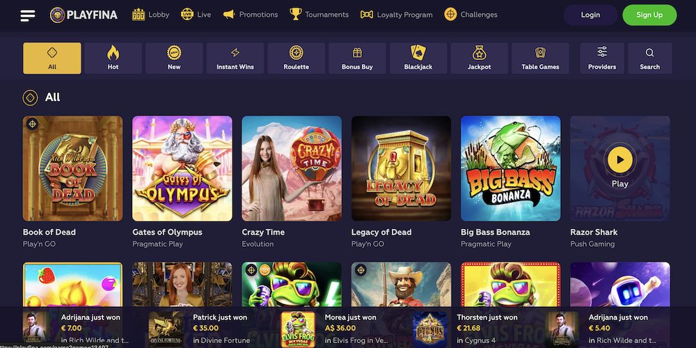 Playfina Casino is an online gambling platform where players can enjoy a wide range of casino games. It offers a diverse collection of games including slots, table games, and live dealer games.