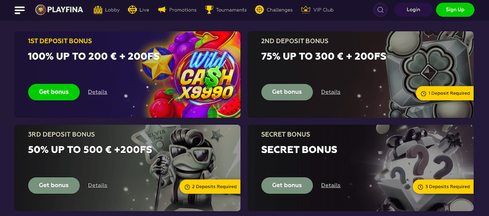 When you sign up with Playfina, you'll be greeted with a generous welcome package that can boost your initial bankroll. This additional bonus money can provide you with more opportunities to explore different games, try out new strategies, and take on higher stakes. With the sign up bonus, you'll have a solid foundation to dive into your gaming adventure with confidence and excitement.
