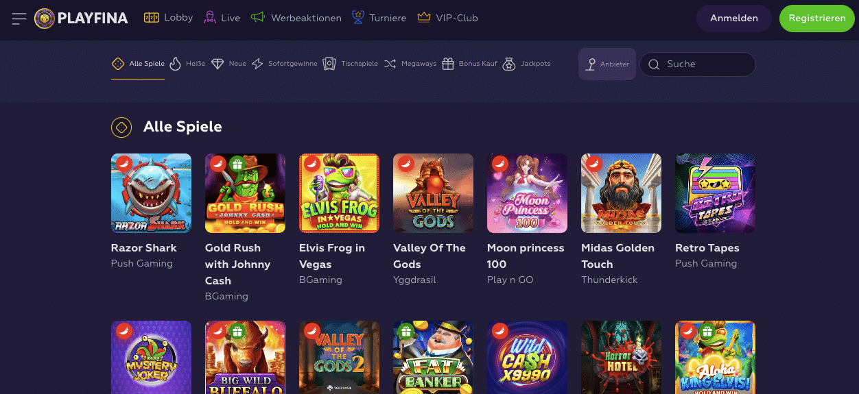 Playfina Casino caters to the diverse preferences of players by offering an array of game categories to suit every taste. Whether you prefer the classic charm of table games, the adrenaline rush of slots, or the strategic elements of card games, Playfina Casino has it all. Each category is filled with a myriad of options, ensuring that players can always find their preferred game style.