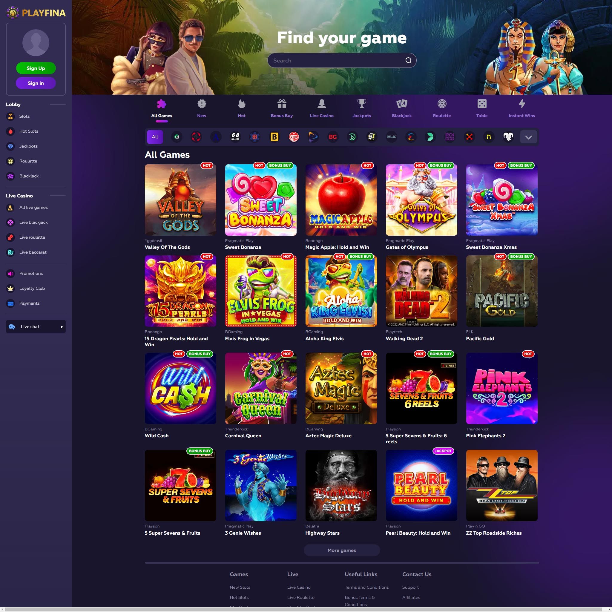 More than 11,000 slots, all varieties of blackjack, dozens of roulette games, craps, video poker, and other games are available to you at Playfina casino online Prepare Yourself for an Exciting and Rewarding Gaming Experience at Playfina Online Casino! Play the Best Online Casino Games at Playfina ✓ Try Slots, Blackjack, Roulette, Craps and Video Poker with Huge Bonuses. Playfina Casino How to Start Up to 1000€ + 200 FS + Secret Bonus... Playfina Casino - Bonus Codes – 50 Free Spins!