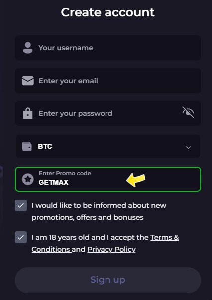 Step 1: Sign up for an account at Playfina Casino.