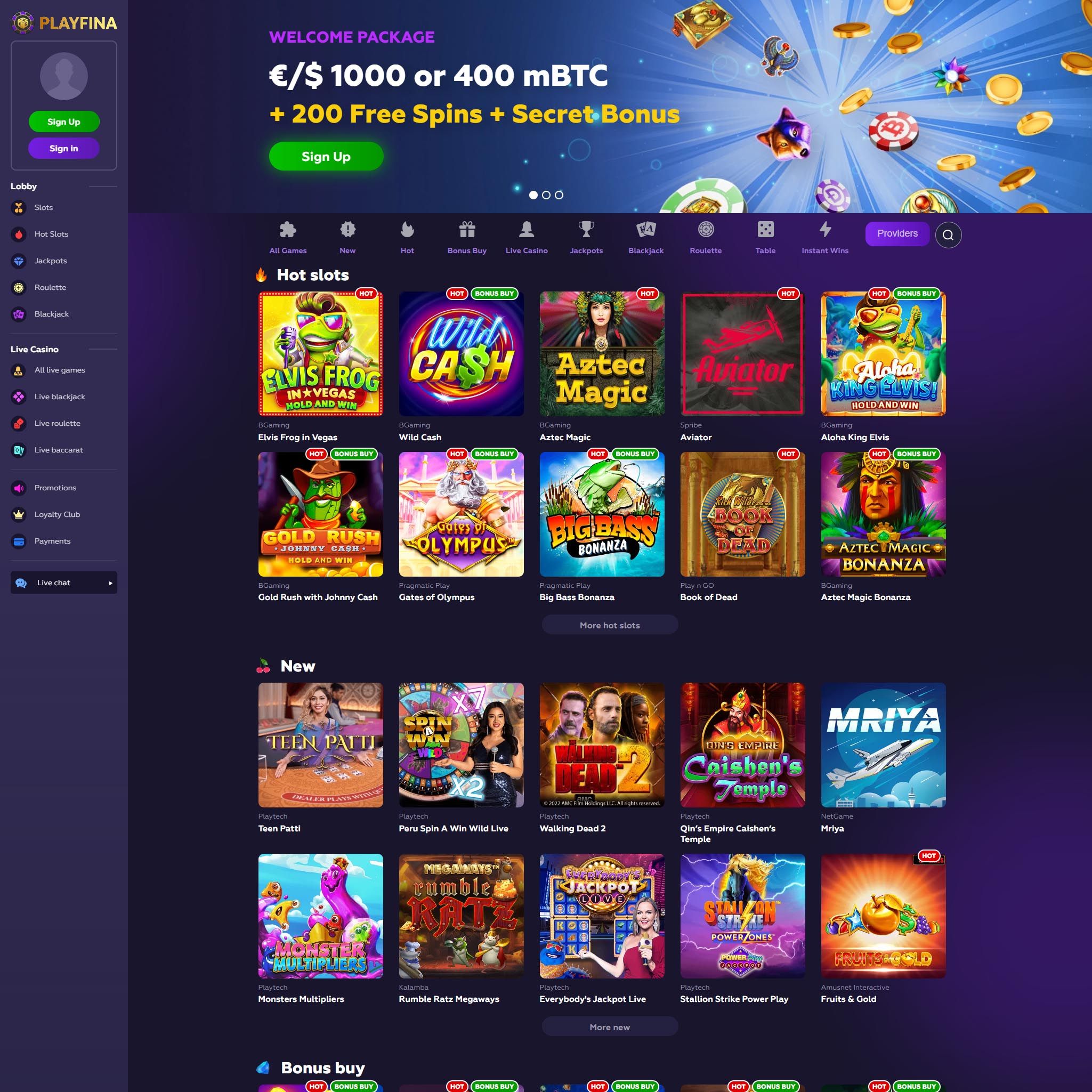 More than 11,000 slots, all varieties of blackjack, dozens of roulette games, craps, video poker, and other games are available to you at Playfina casino online Unveiling the Inner Workings - Unveiling the Software and Technology Driving the Success of Playfina Casino! Play the Best Online Casino Games at Playfina ✓ Try Slots, Blackjack, Roulette, Craps and Video Poker with Huge Bonuses. Playfina Casino How to Start Up to 1000€ + 200 FS + Secret Bonus... Playfina Casino - Bonus Codes – 50 Free Spins!